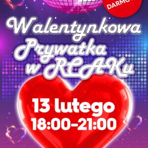 Regionalne Centrum Animacji Kultury w Zielonej Górze zaprasza na walentynkową potańcówkę! Start: 13 lutego 2026 roku, godz. 18:00 – 21:00 Świetna zabawa gwarantowana! Wstęp wolny