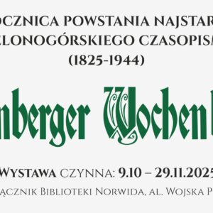 Wystawa ,,Grünberger Wochenblatt”Zapraszamy do obejrzenia wystawy, pn. „Grünberger Wochenblatt - 200-lecie powstania ... 17 paź Wojewódzka i Miejska Biblioteka Publiczna im. C. Norwida w Zielonej Górzeal. Wojska Polskiego 9, 65-077 Zielona Góra