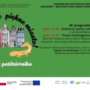 Spacer dla rodzin i warsztaty w Bibliotece Pana KleksaZapraszamy na rodzinny spacer edukacyjny dla dzieci i młodzieży po ... 18 paź11:00 Wojewódzka i Miejska Biblioteka Publiczna im. C. Norwida w Zielonej Górzeal. Wojska Polskiego 9, 65-077 Zielona Góra