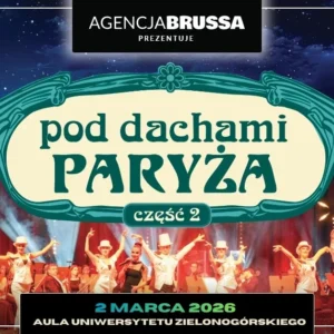 Zapraszamy na spektakl teatralno – muzyczny, pt. ,,Pod dachami Paryża cz. II”! Wydarzenie odbędzie się 2 marca 2026 roku o godz. 19:00 w Auli Uniwersytetu Zielonogórskiego przy ul. Podgórnej. Francuska piosenka spotyka tu teatr, taniec i nowoczesną oprawę wizualną, tworząc spójny, intensywny spektakl sceniczny. Publiczność otrzymuje nie tylko znane i kochane utwory, ale także nowe […]