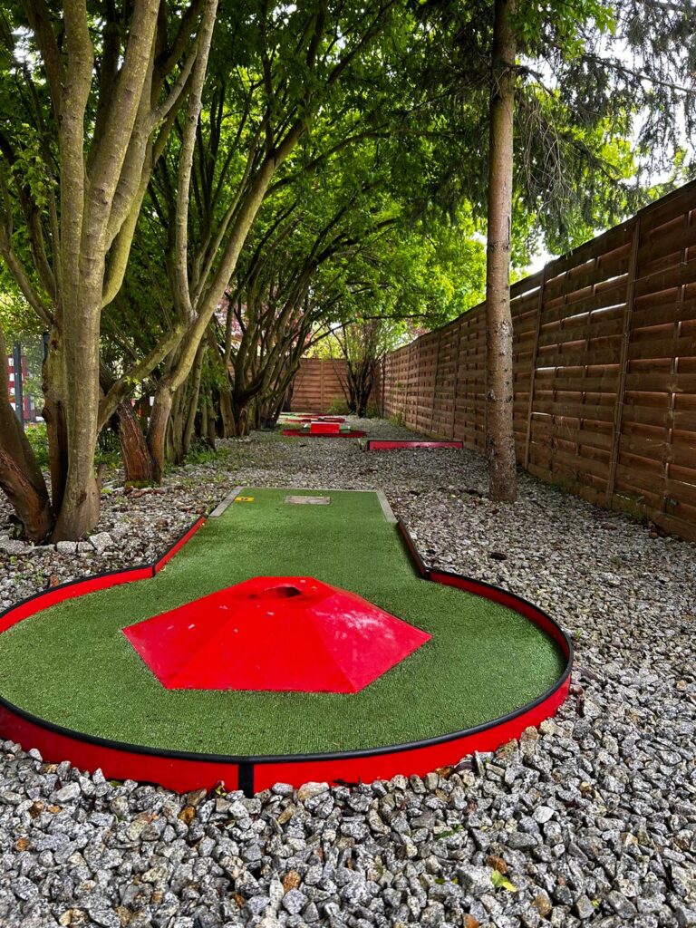 Minigolf pod klonami to świetna atrakcja na świeżym powietrzu w Zielonej Górze – świetna dla rodzin, par i grup przyjaciół. Na malowniczym terenie w cieniu drzew czeka 18 torów minigolfa, profesjonalne kije i piłeczki dopasowane do wzrostu graczy oraz luźna, przyjazna atmosfera. Gra jest łatwa do opanowania, więc świetnie sprawdza się zarówno dla dzieci, jak i dorosłych – nie wymaga specjalnych umiejętności ani kondycji.