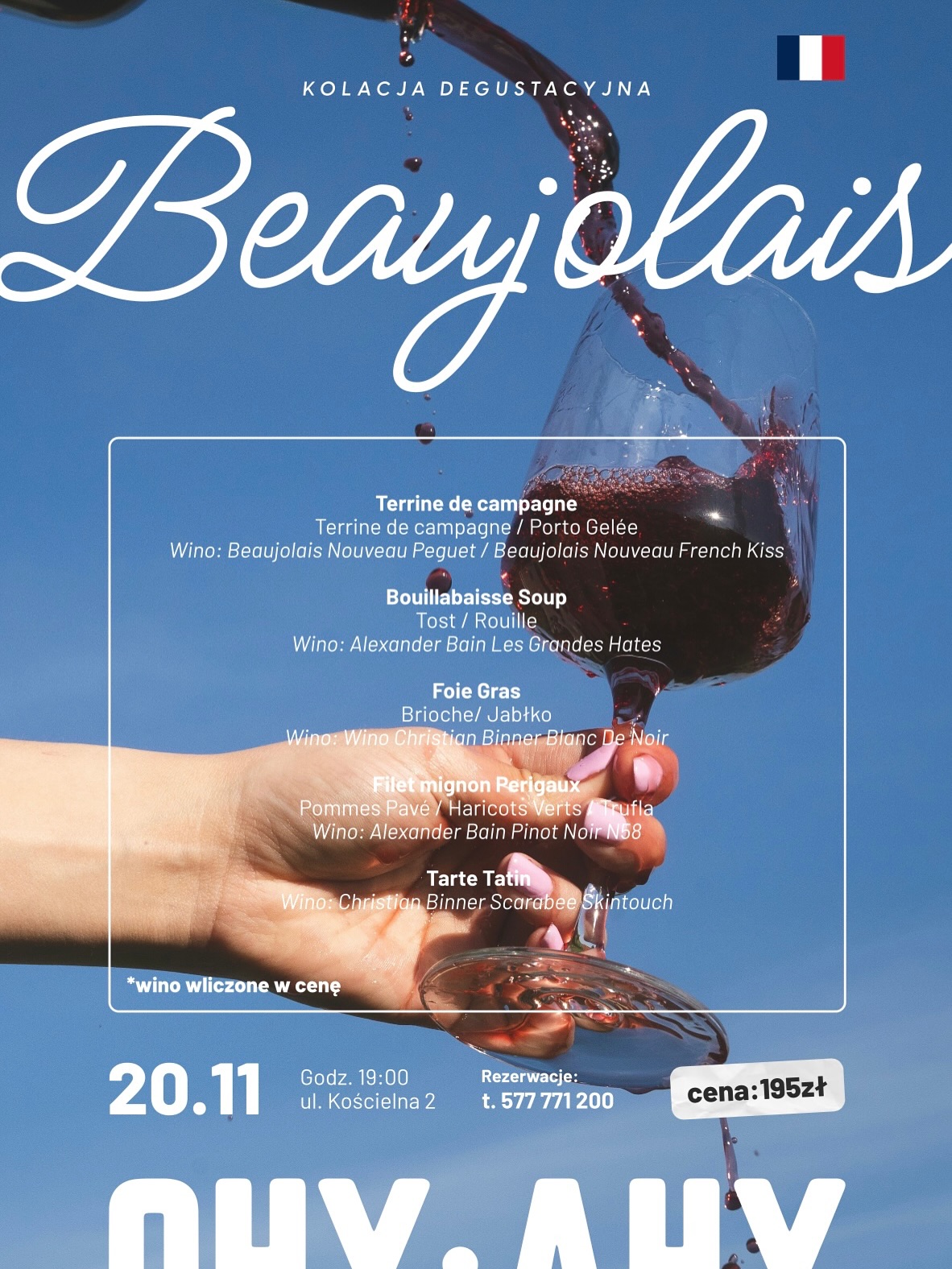 20 listopada o godzinie 19:00 w restauracji Ohy Ahy odbędzie się wyjątkowa kolacja degustacyjna z okazji Święta Beaujolais – prosto z serca Francji!
