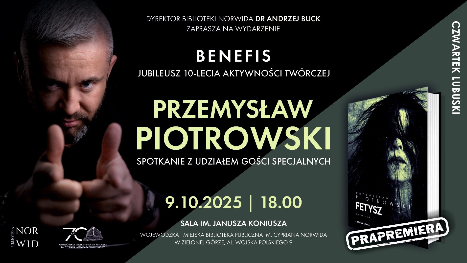 Wydarzenie odbędzie się 9 października 2025 o godz. 18:00 w sali im. Janusza Koniusza, al. Wojska Polskiego 9.