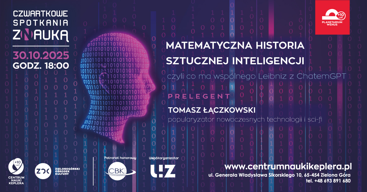 Temat spotkania to: ,,Matematyczna historia sztucznej inteligencji, czuli co ma wspólnego Leibniz z Chatem GPT”.