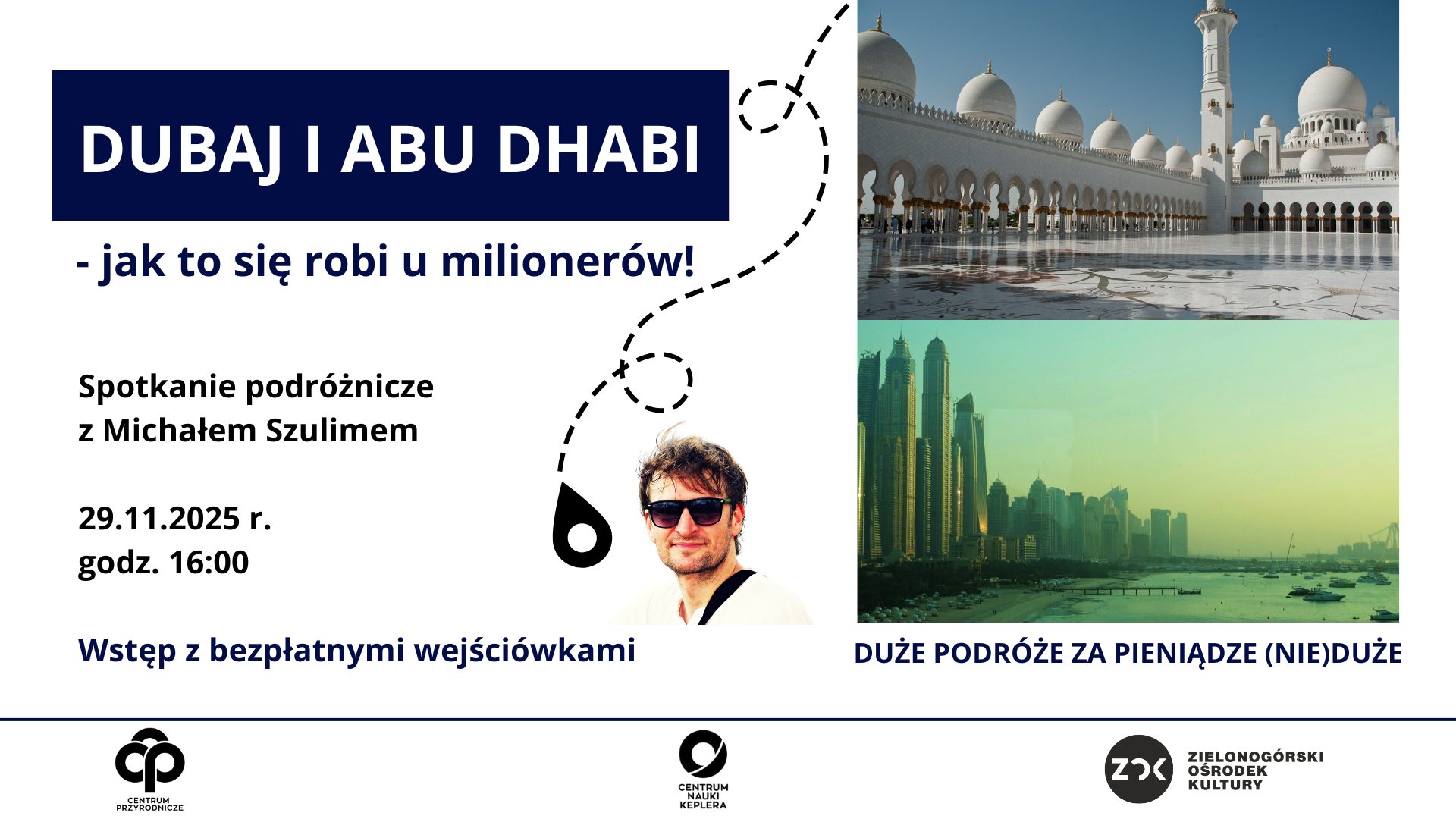 Zapraszamy na spotkanie z Michałem Szulimem, który opowie o swojej wyprawie do Zjednoczonych Emiratów Arabskich.