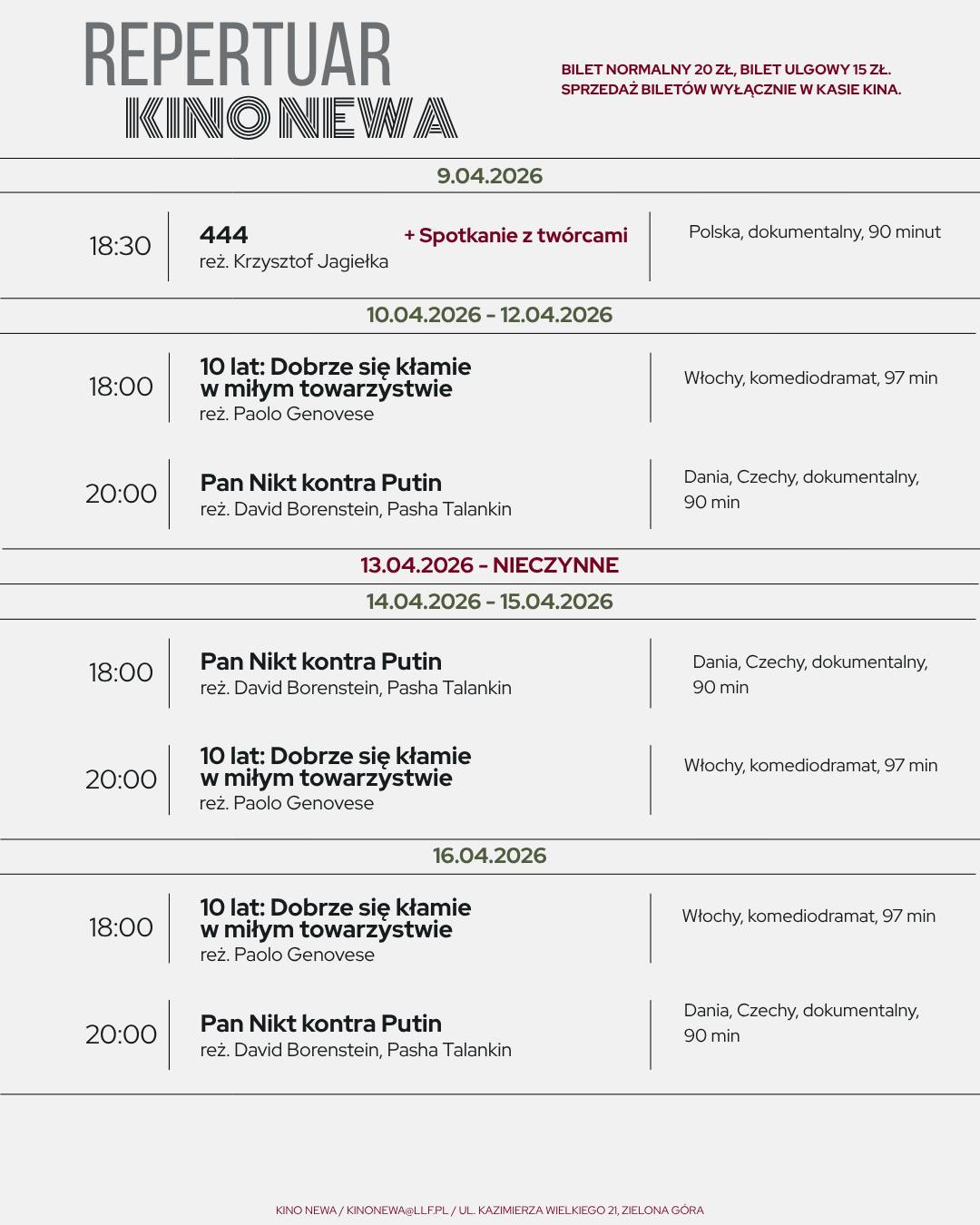Seans odbędzie się 9 kwietnia 2026 roku o godz. 18:30 w Kinie Newa przy ul. Kazimierza Wielkiego 21.