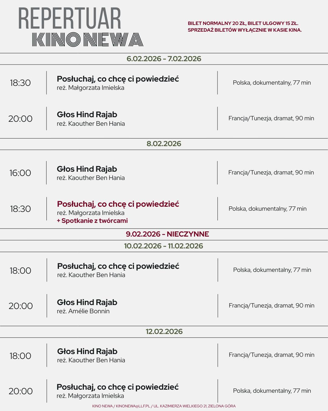Seanse odbędą się w dniach 6 – 8 lutego 2026 roku o godz. 18:30 w Kinie Newa przy ul. Kazimierza Wielkiego 21.
