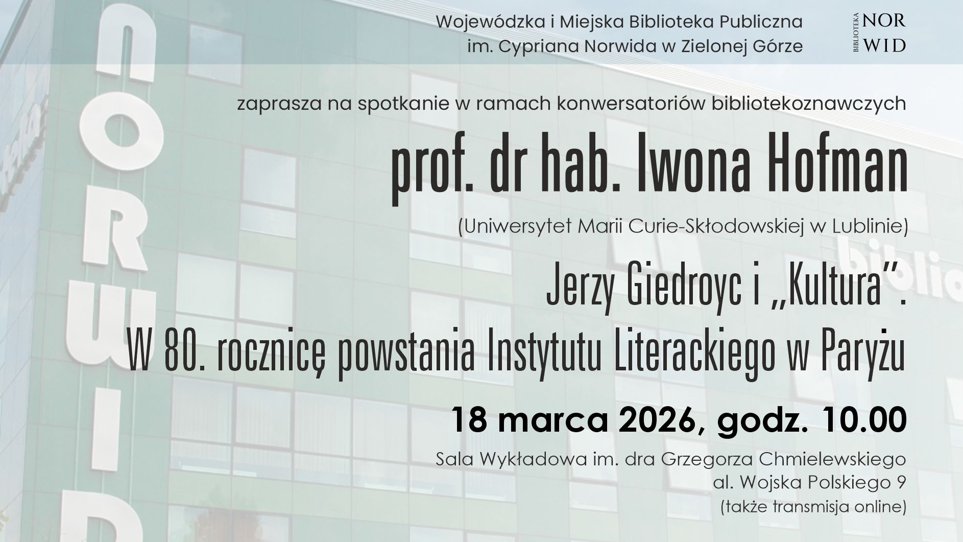 Wydarzenie odbędzie się 18 marca 2026 roku o godz. 10:00 w budynku Wojewódzkiej i Miejskiej Biblioteki Publicznej przy al. Wojska Polskiego 9 w Zielonej Górze.