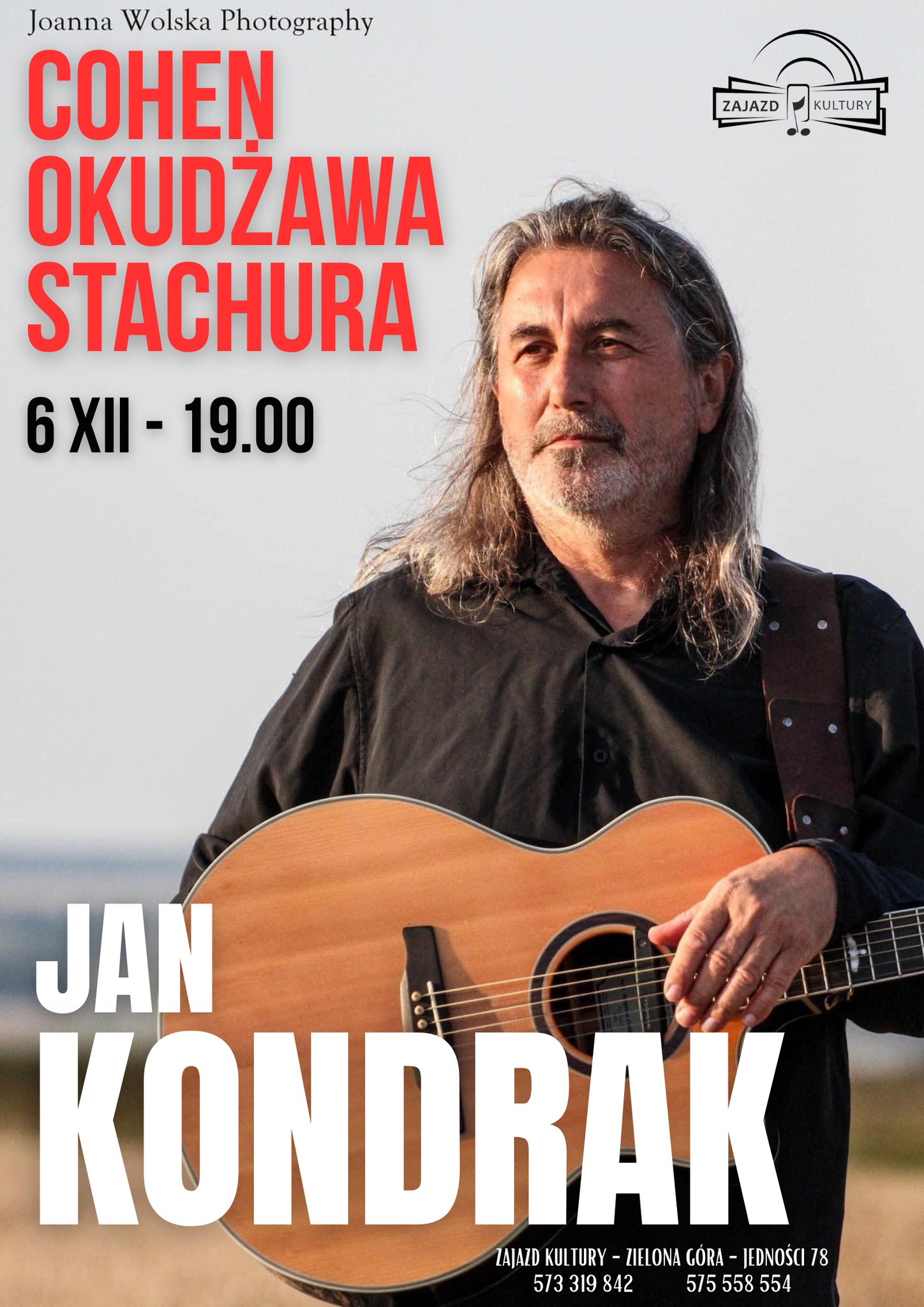 Kondrak przedstawi swoją interpretację utworów wielkich artystów, m. in. Leonarda Cohena, Edwarda Stachury i Bułata Okudżawy.