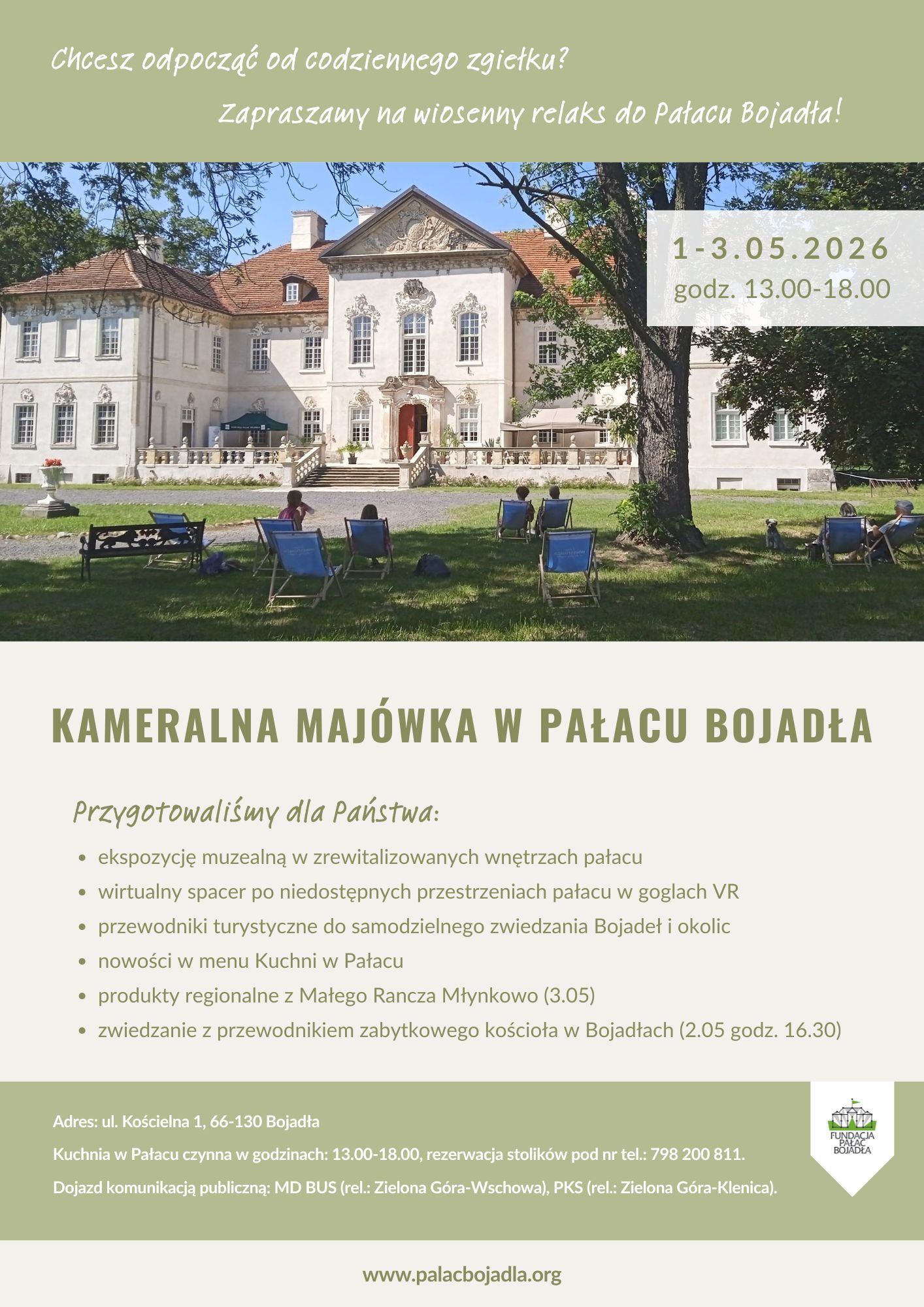 Zapraszamy na majówkę w historycznych wnętrzach pałacu w Bojadłach.