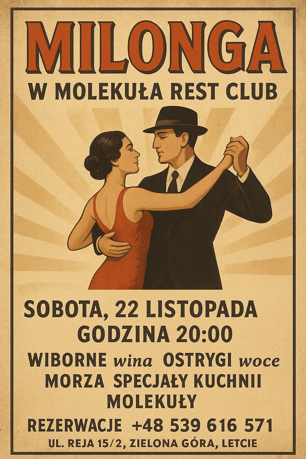 Wydarzenie odbędzie się 22 listopada 2025 roku o godz. 20:00 w Restauracji Molekuła Rest.