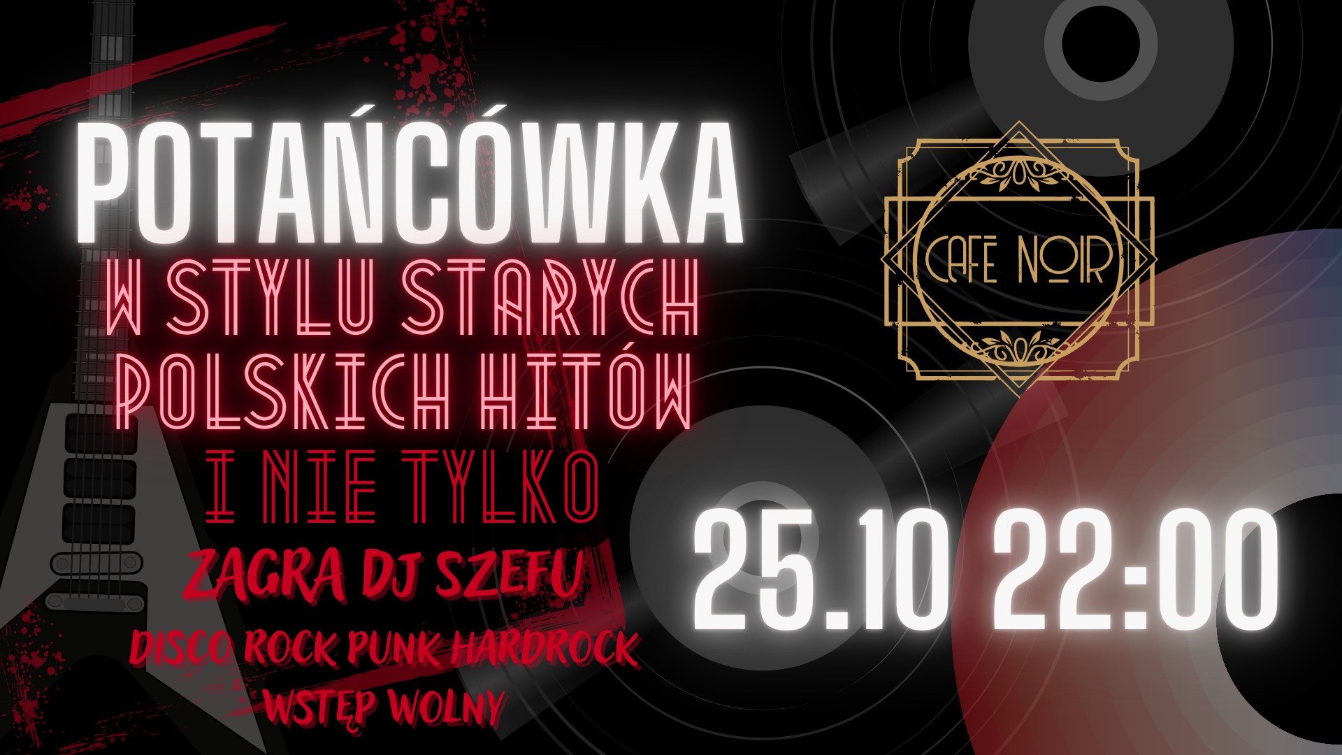 Zapraszamy 25 października 2025 roku o godz. 22:00 na potańcówkę w rymie starych hitów w Cafe Noir!