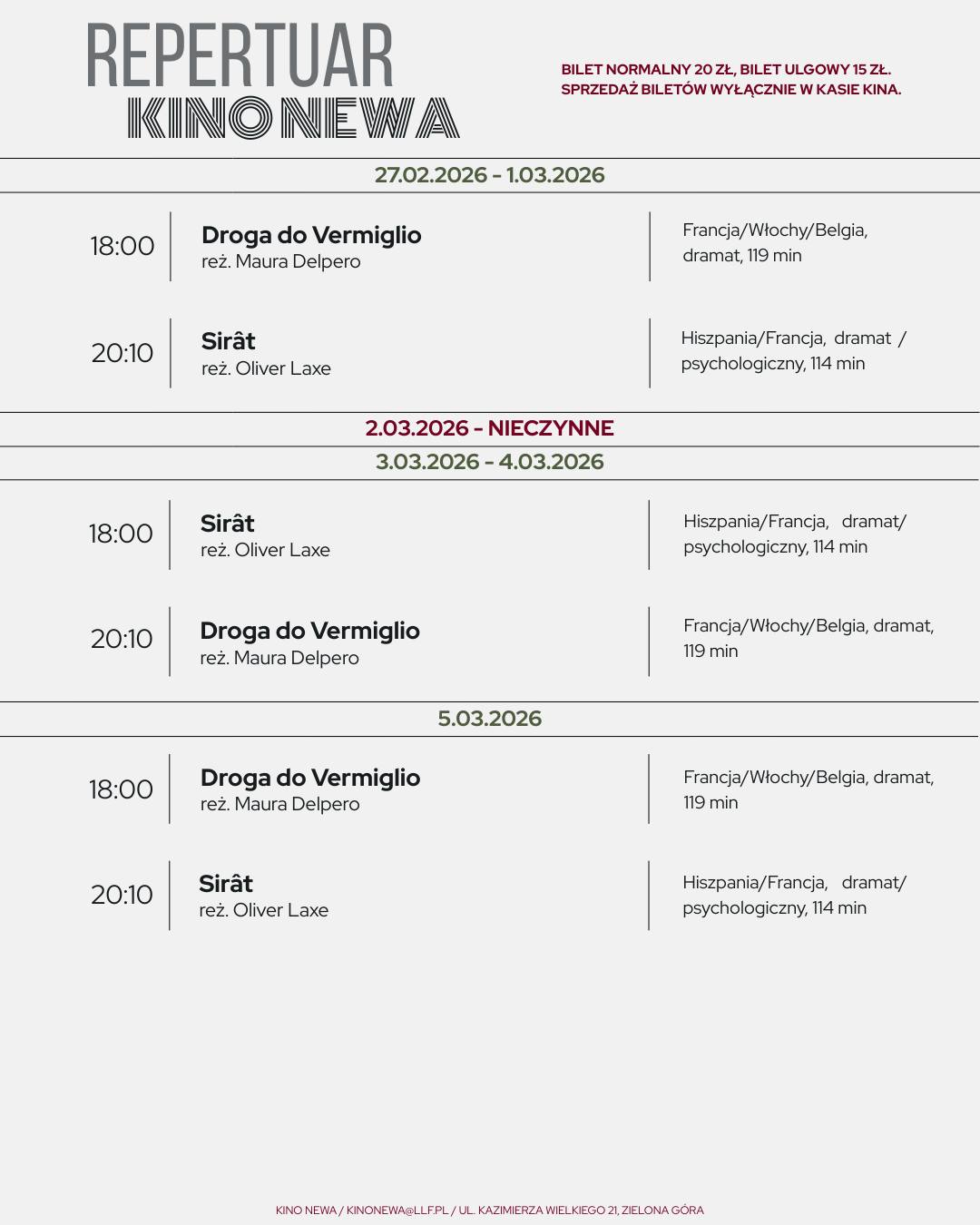 Seanse odbędą się w dniach 27 lutego – 1 marca 2026 roku o godz. 18:00 w Kinie Newa przy ul. Kazimierza Wielkiego 21.