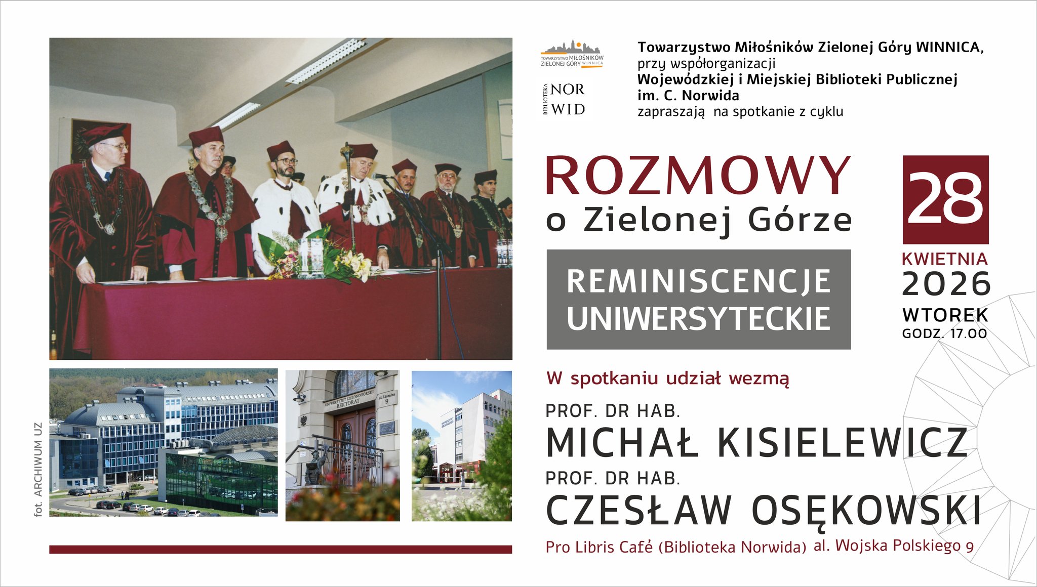 Wydarzenie odbędzie się 28 kwietnia 2026 roku o godz. 17:00 w gmachu Biblioteki Norwida w Zielonej Górze.