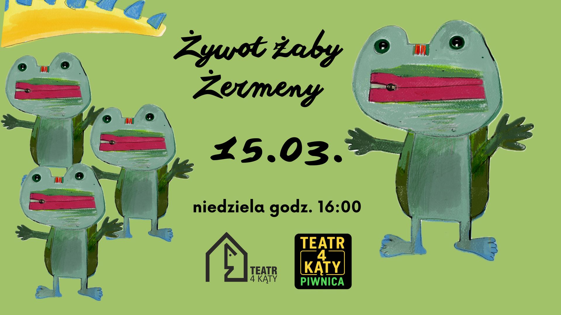 Zapraszamy na spektakl dla dzieci Teatru 4 Kąty ,,Żywot żaby Żermeny”! W programie również żabie warsztaty!