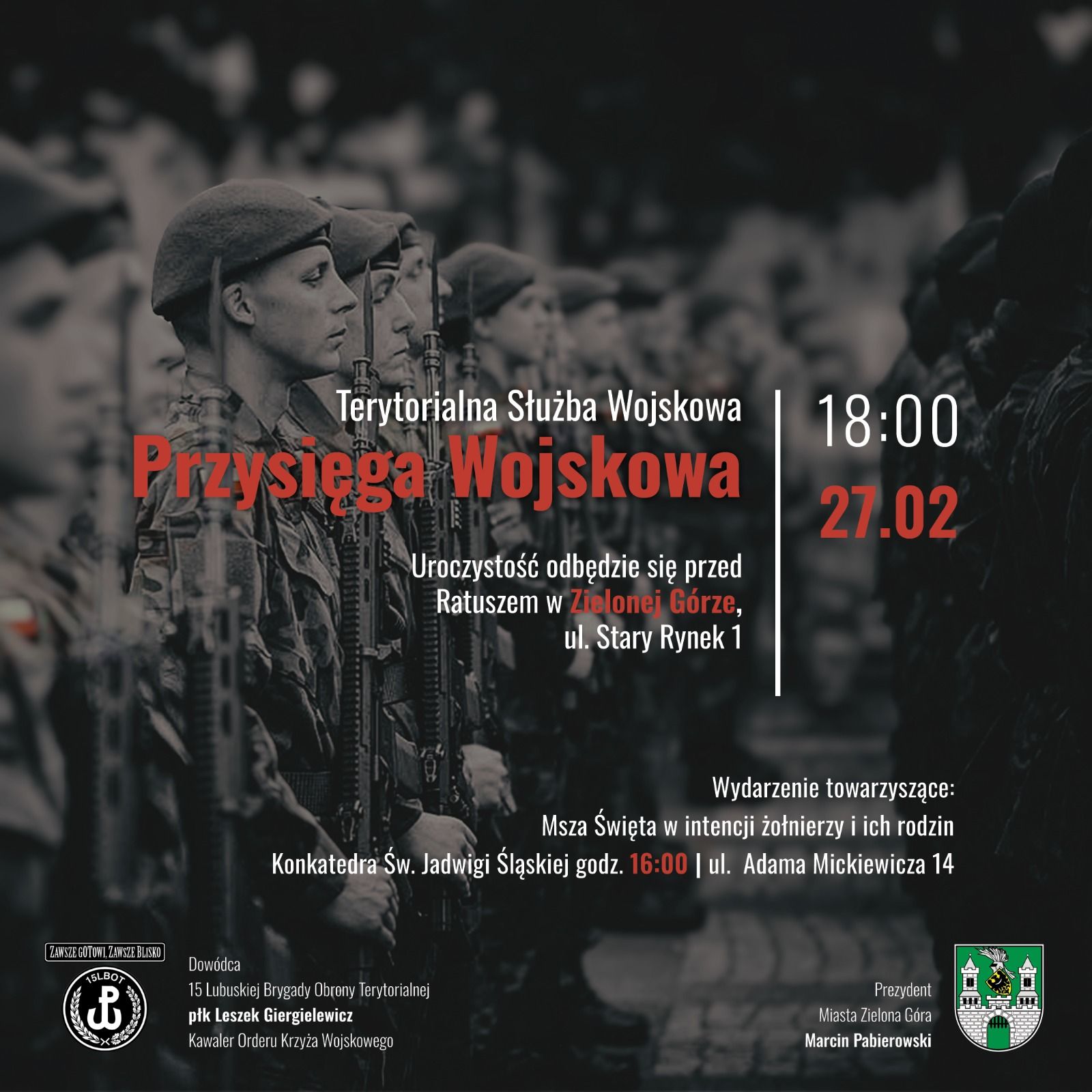 Zapraszamy na uroczystą przysięgę wojskową żołnierzy 15. Lubuskiej Brygady Obrony Terytorialnej.