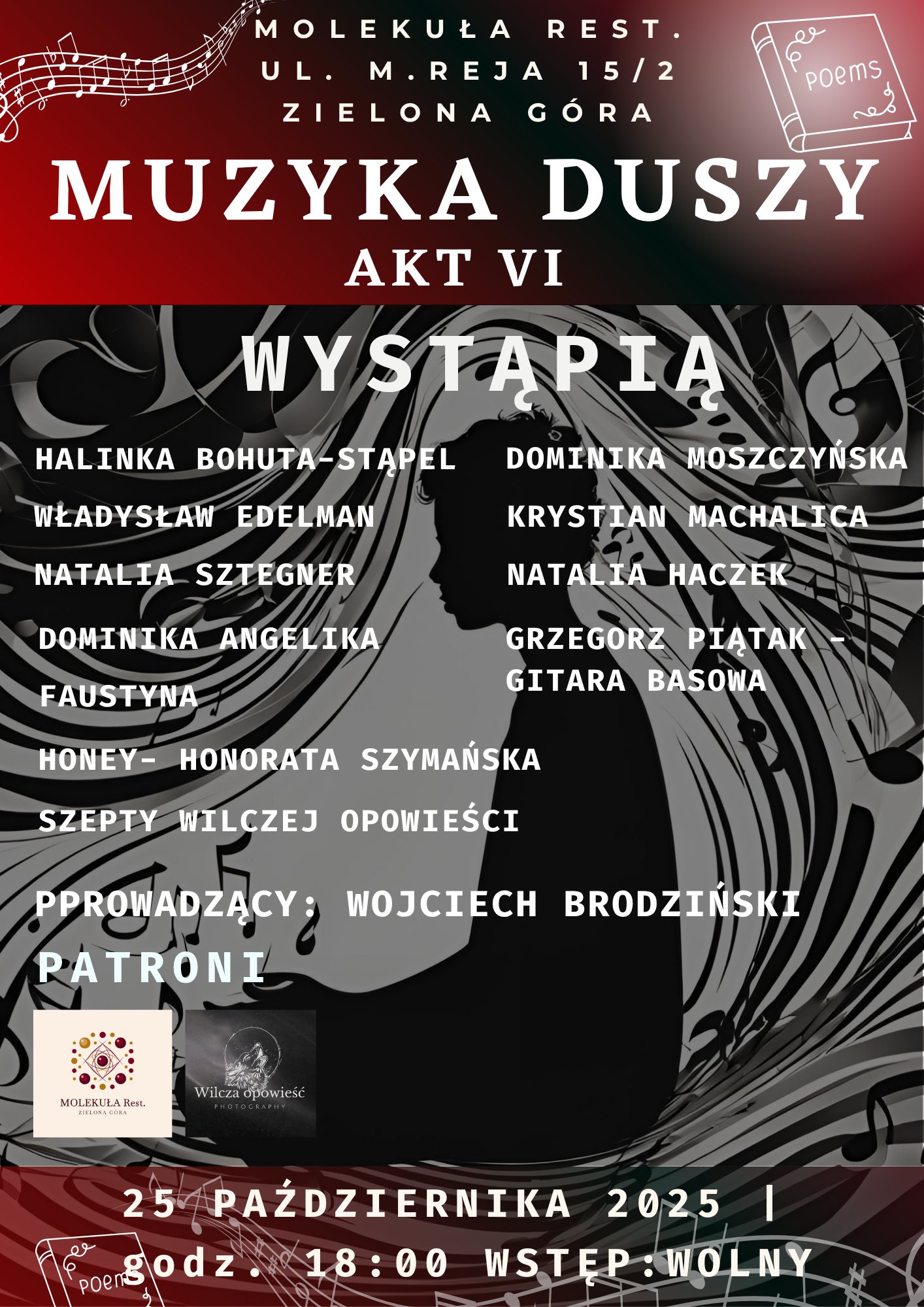 Wydarzenie odbędzie się 25 października 2025 roku o godz. 18:00 w Restauracji Molekuła Rest.