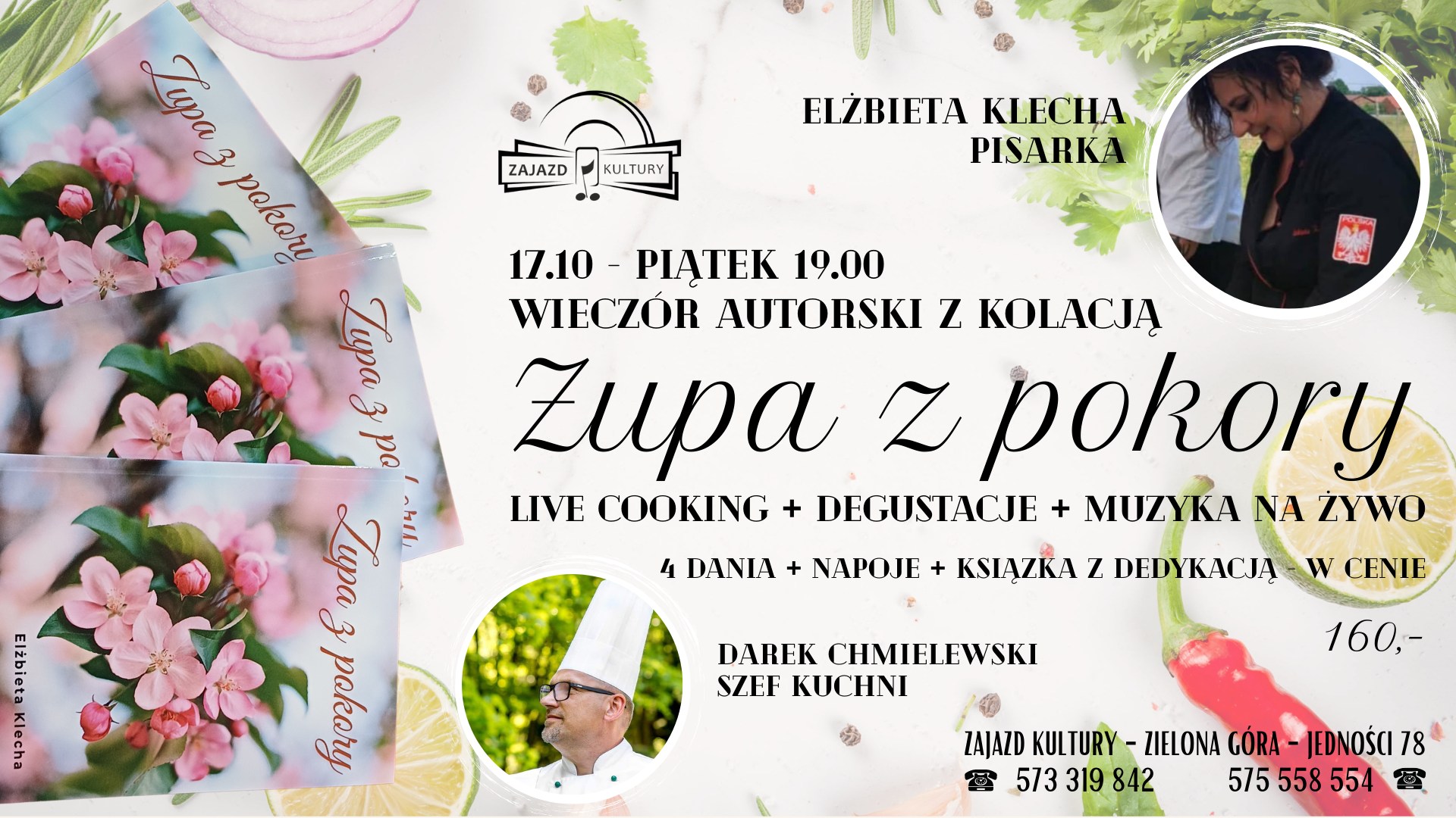 Wieczór autorski połączony będzie z pokazem gotowania na żywo, degustacją i muzyką na żywo.
